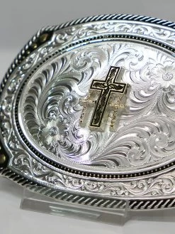 AndWest 530-822M Georgia Flag Oval Rope Edge Buckle Antique Gold And Silver