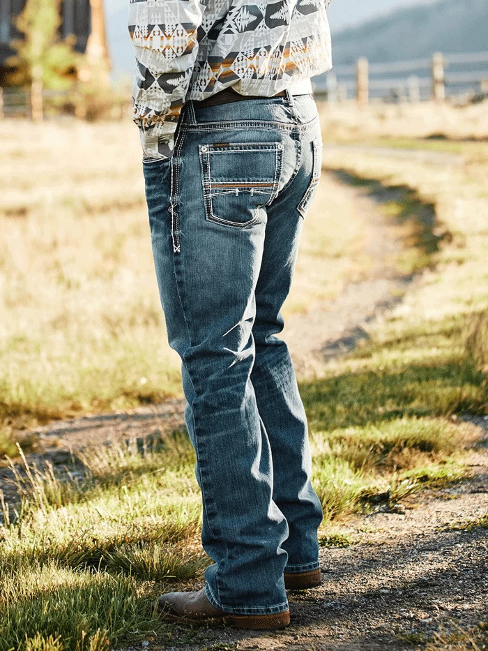 Ariat 10017511 Mens M4 Low Rise Coltrane Boot Cut Jean Durango – Â A modern take on a classic style. Comfortable and durable, our boot cut M4 is relaxed through the hip and thigh for a fit that looks good on everyone.