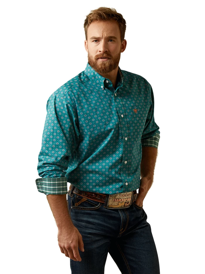 Ariat 10045071 Mens Wrinkle Free Fuller Classic Fit Long Sleeve Shirt Green
