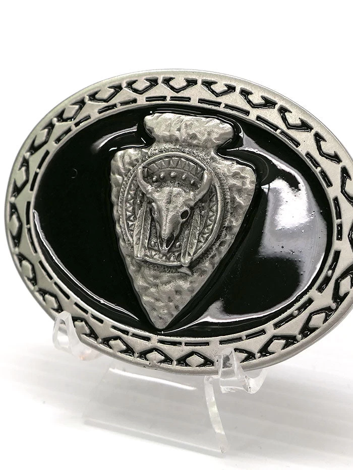 Arrowhead with Skull Shield Pewter Belt Buckle 5978