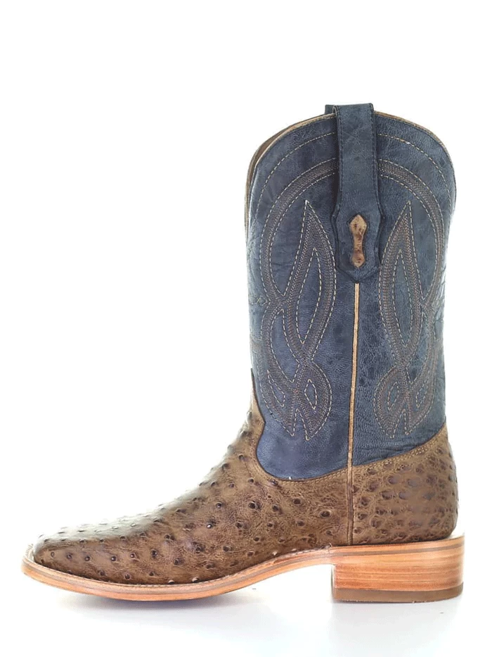Corral A4052 Mens Ostrich Embroidery Square Toe Western Boot Navy And Orix