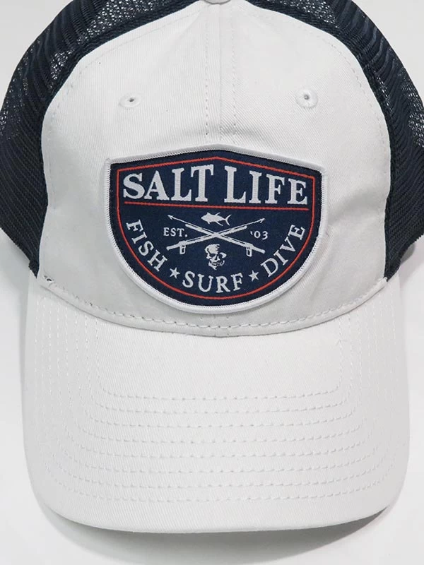 Salt Life SLM20155 SPEARFISH BADGE Mesh Back Cap White